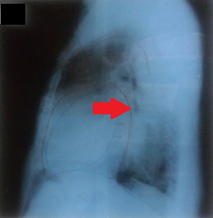 ①心陰影の拡大(心・胸郭比↑)CTR=75.8%(基準:50%未満)
