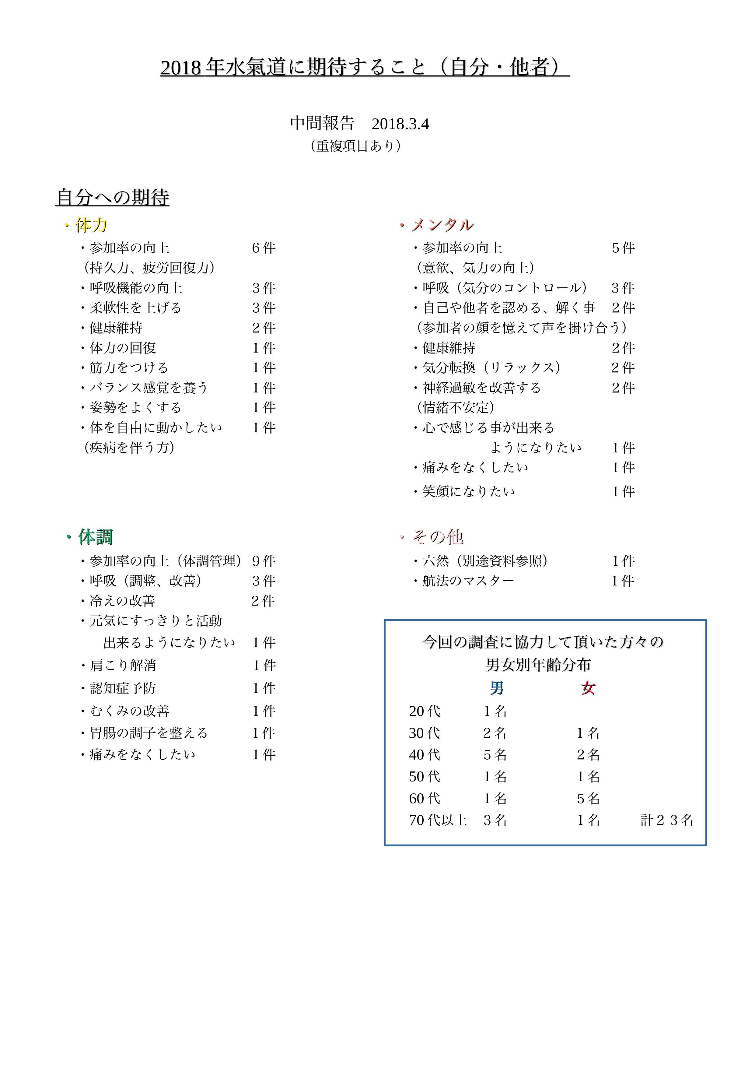 今回は水氣道会員の皆様から寄せられた、今年の目標、